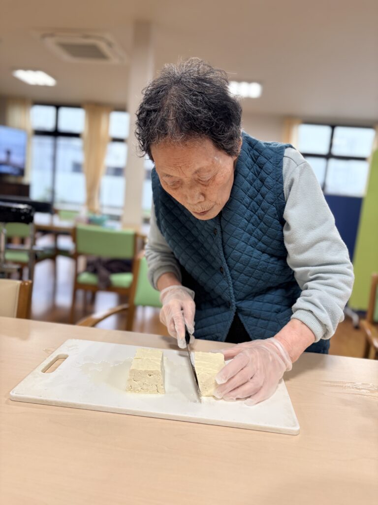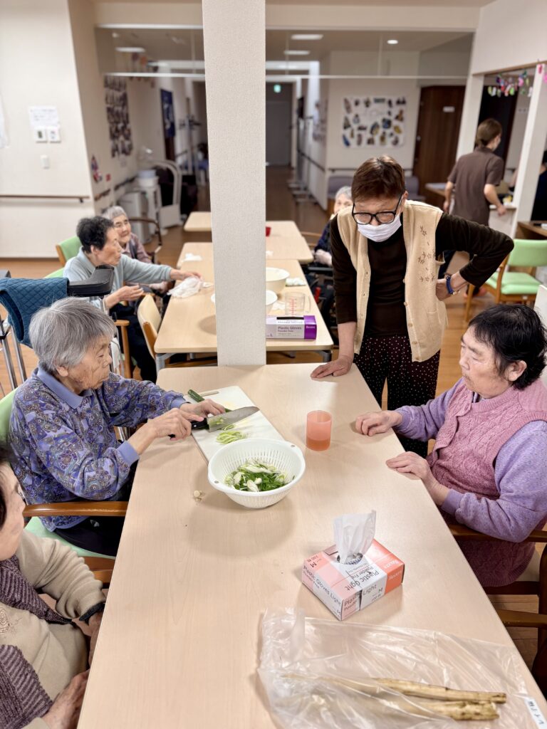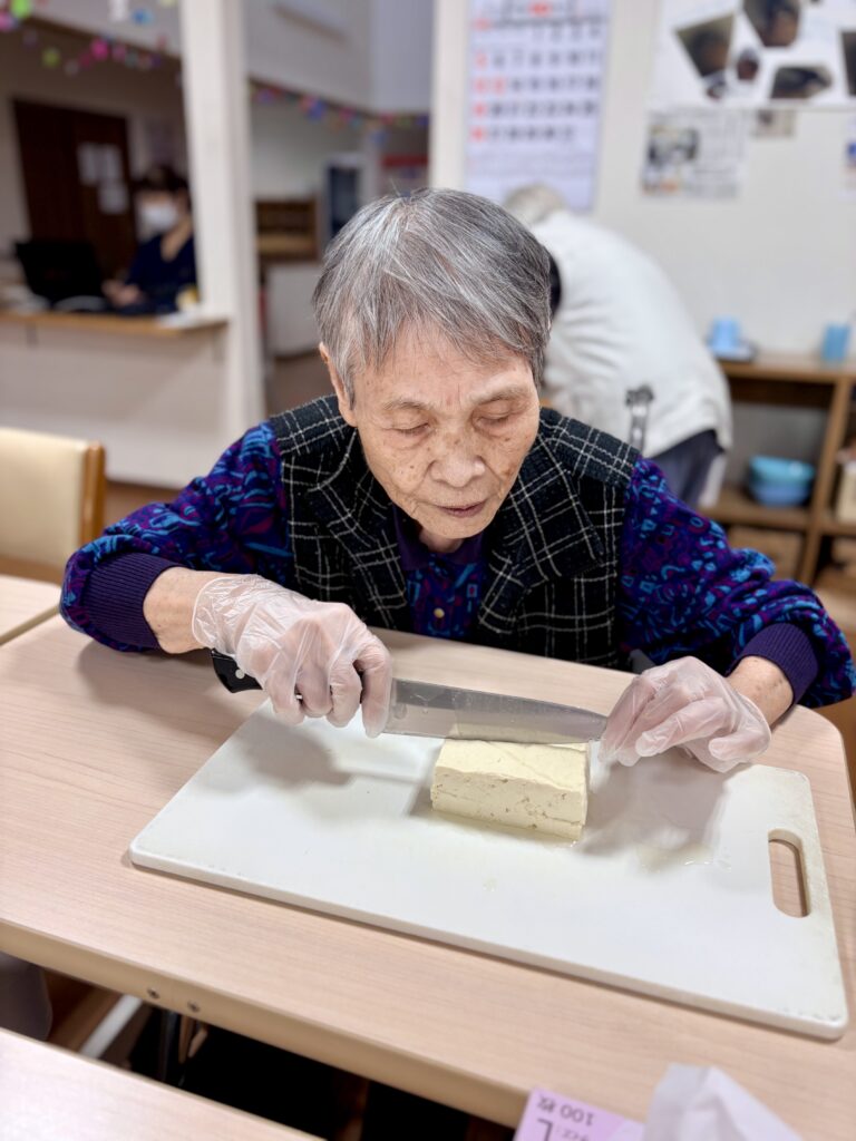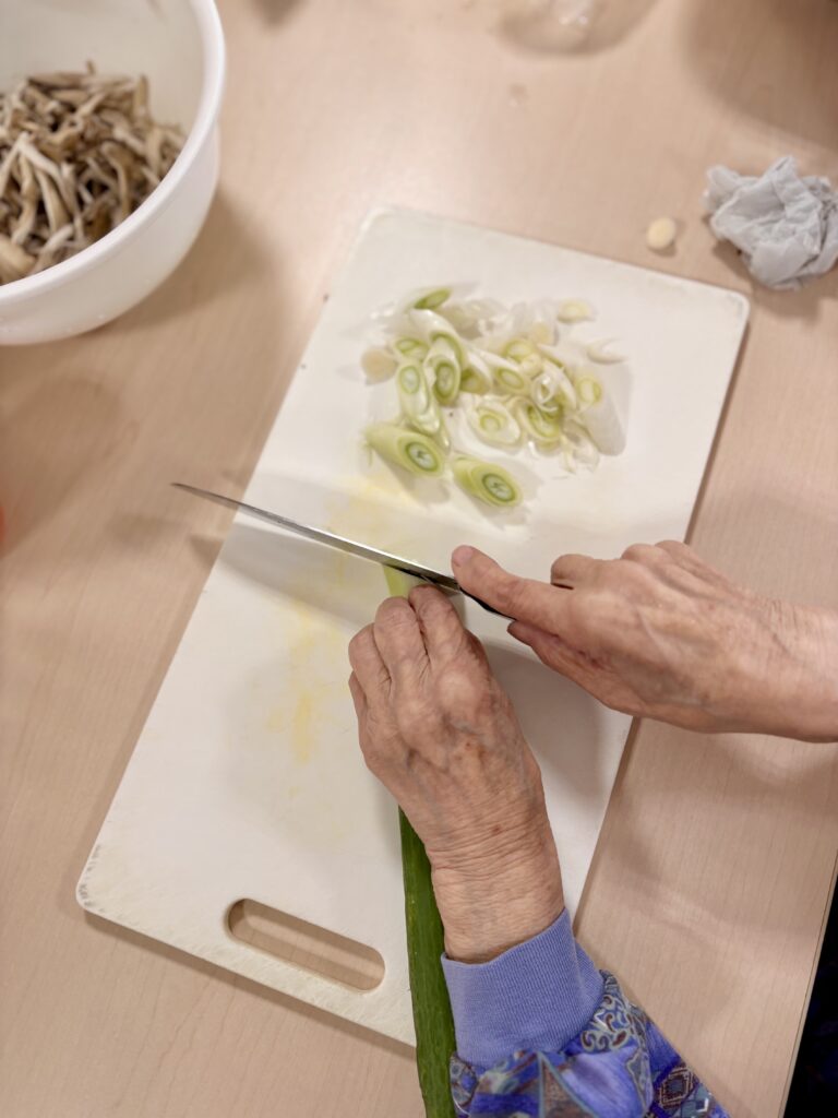 『久々に包丁にぎったよ~』と嬉しそうに話していた利用者様は、いつもは見せない真剣な表情で丁寧に食材を切ってくれましたヽ(^o^)丿