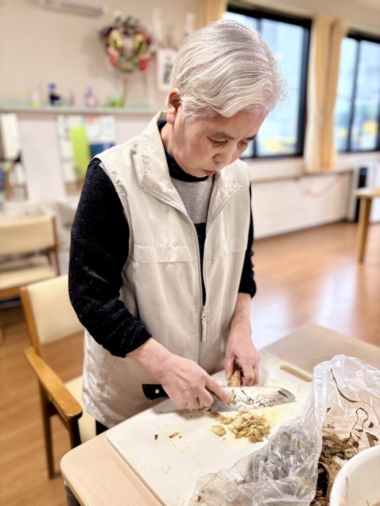 ネギやゴボウを切ったりキノコを割いたりと、皆さんとっても手際が良いです♬