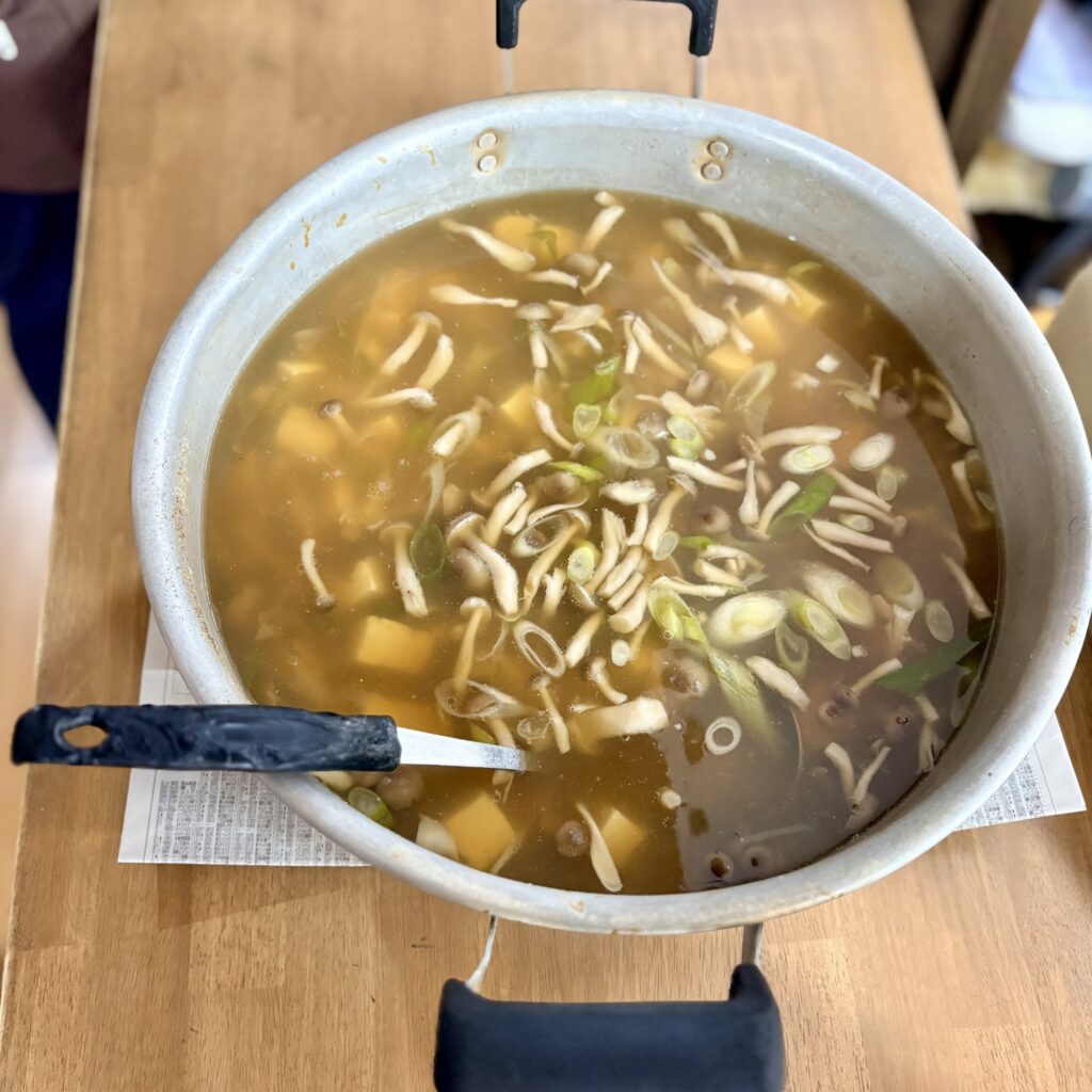 出来上がった芋の子汁と小豆ばっとうは、昼食と一緒にいただきました♪