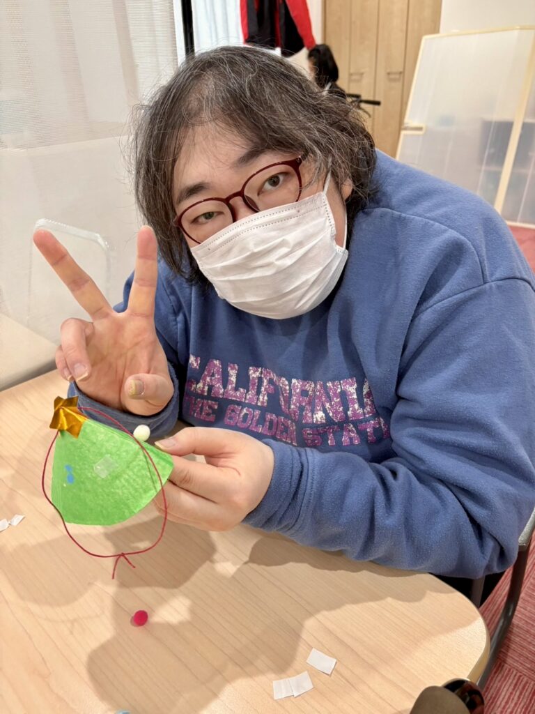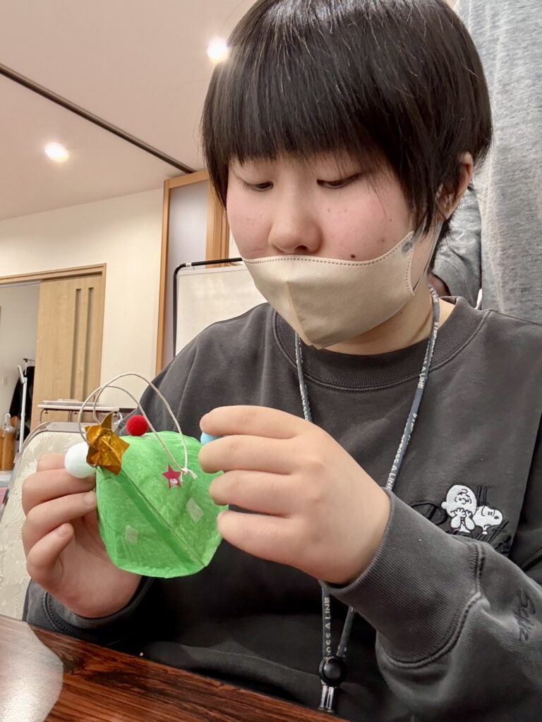 午前中はクリスマスツリーの制作とカップケーキ作りを行いました♬